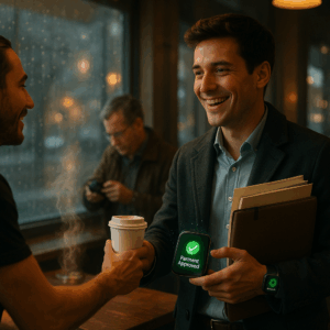 The barista smiles and hands you your usual oat milk latte. “It’s already taken care of, Jamie,” she says. You grab your coffee, wave thanks, and head straight to your table. No digging for wallets. No fumbling with apps. No payment hassle.